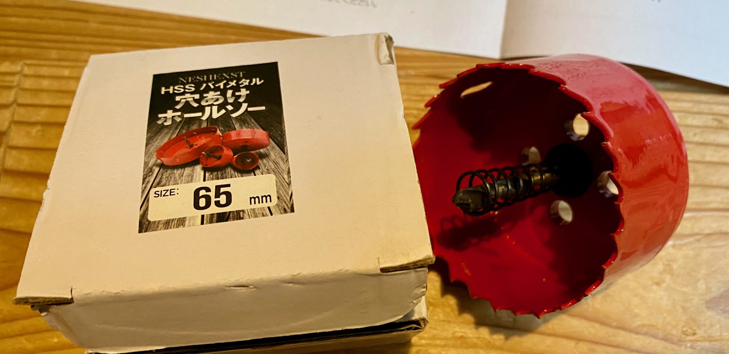 買ったホールソーです。65mmの穴を開けます。