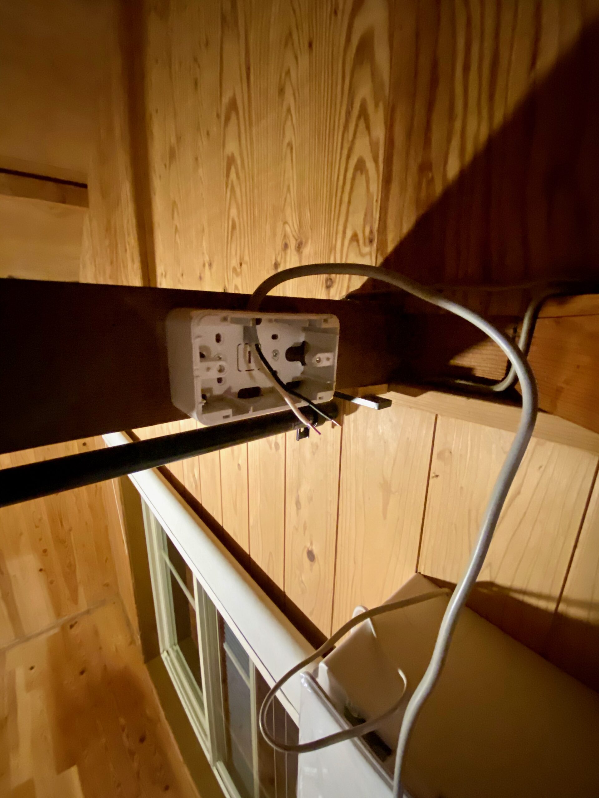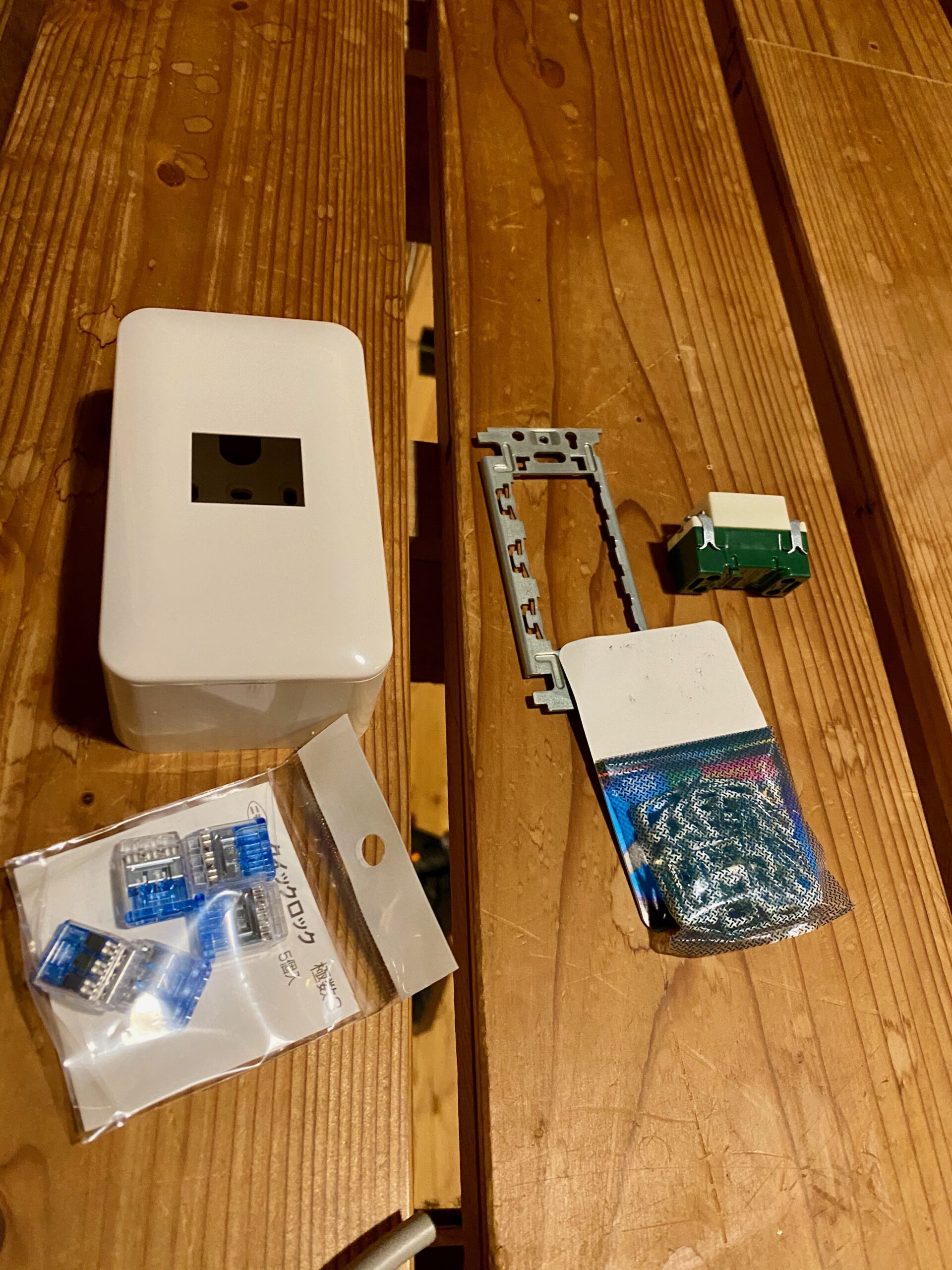 カライエの設置場所から電源が取れなかったのでコンセントを増設します。材料費は600円ぐらいかなと。電気工事には資格が必要。