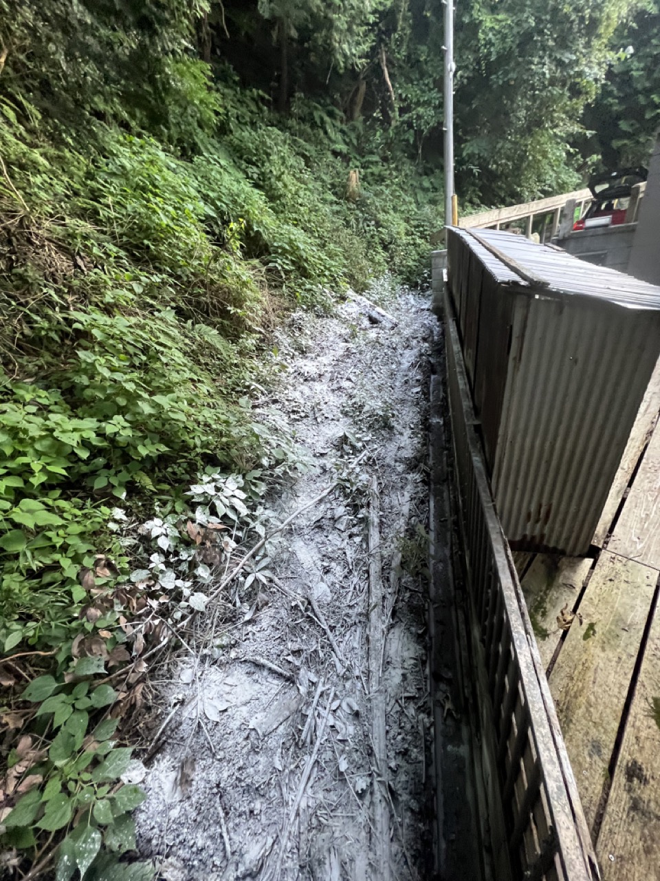 ヤスデの発生源は明らかに隣接する山林部分です。当物件は被害を受けている立場です。