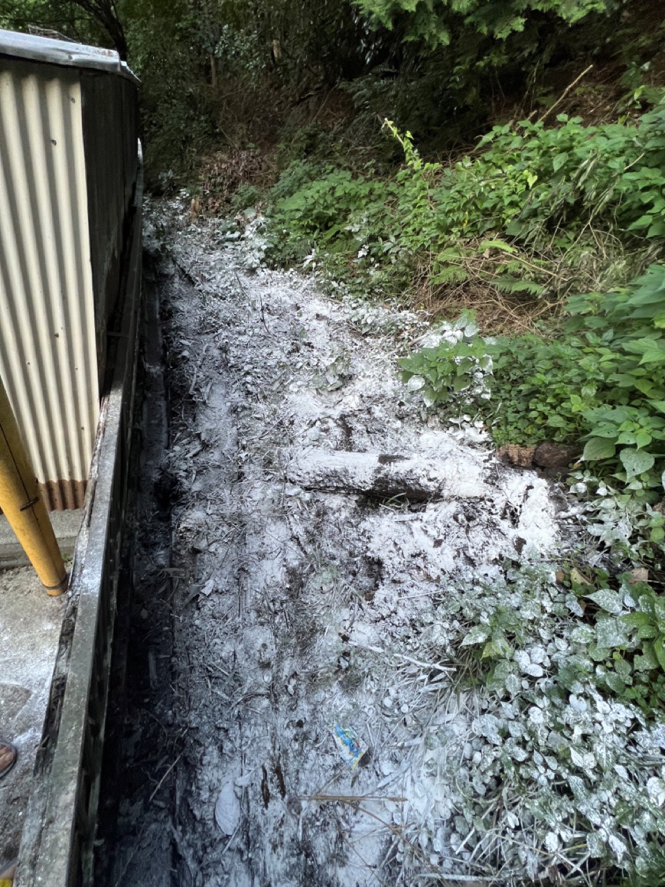 土のある箇所に消石灰を散布しました。20kgを1袋使用しました。